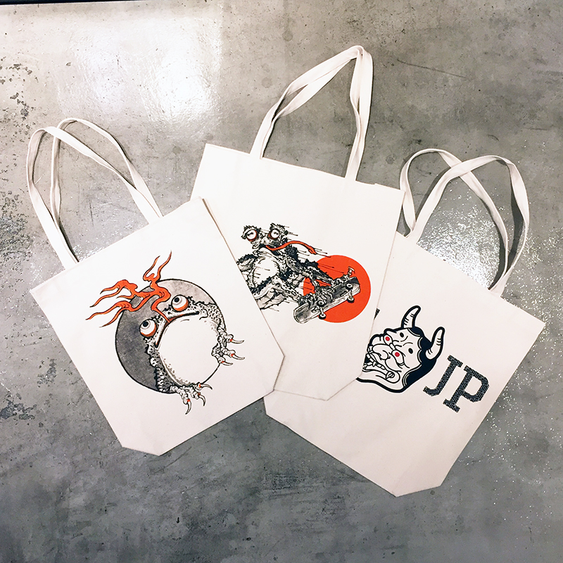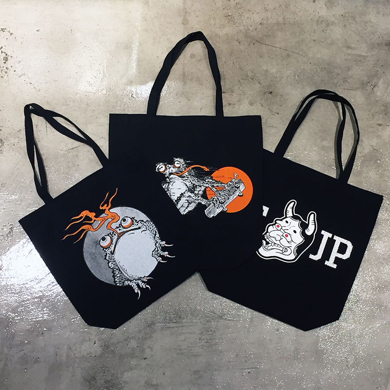 Ganjiデザインによるカエルと、定番の3TJP HANNYAロゴのキャンバス生地を使用したトートバッグが登場!