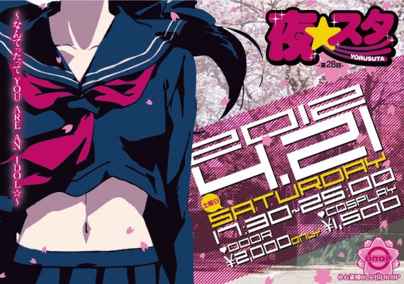 夜☆スタ -第二十八話- 2012年4月12日 イベント お知らせ ご報告 最新NEWS お客さん主体の参加型クラブイベント夜☆スタが 4月21日に心斎橋CLUB DROPで開催されます!!!!! 第二十八話となる今回のテーマは “なんてったってYou are an idol☆”!!! 今回は当日券のみコスプレ割りがあるらしぃ!!!!! もちろんスリータイズも参戦いたしますYOッ♬” HIROSHIが会場でボディーペイントしますYOッ♬” アニメ好きの方もぉ〜そぉじゃない方もぉ〜 21日は夜☆スタに遊びに行こぉッ!!!!! URL Copied!